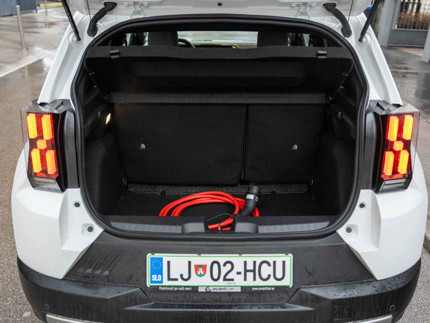 Za punjenje vozila iz prtljažnika uzmete odgovarajući kabel. Poklopac utičnice za punjenje vozila otvorite nježnim pritiskom na njega. Jedan kraj kabela priključite u vozilo, a drugi kraj u punionicu.